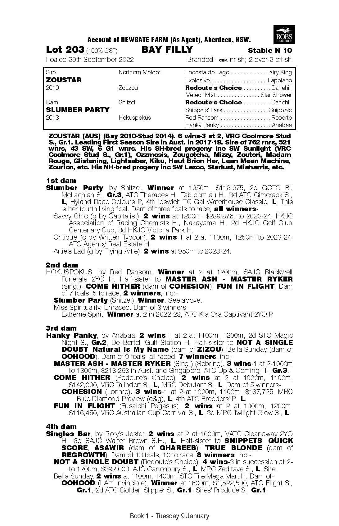 One of my aims for this sale was to find a daughter of Zoustar, and I'm extremely pleased to have secured this striking filly. Presenting stronger than most fillies by this sire, she looks like a ready made race horse. Her great attitude impressed the entire team each time we inspected her on farm and at the complex. She is from one of the best female families in the Australian Stud Book, so at $375,000 we believe she was exceptional value.